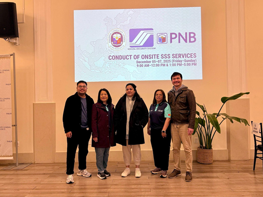 San Francisco, 09 December 2025 — The Philippine Consulate General in San Francisco, in partnership with the Social Security System (SSS) – Los Angeles Representative Office and the Philippine National Bank (PNB), successfully delivered a wide range of frontline services during a three-day outreach mission held on 05–07 December 2025 at Kalayaan Hall, Philippine Center.