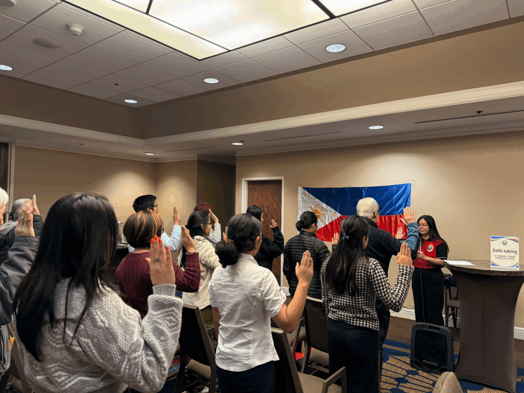 Vice Consul Glaiza Quarteros administered the oath of allegiance to applicants for dual citizenship during the consular outreach mission in Anchorage, Alaska (San Francisco PCG photo)