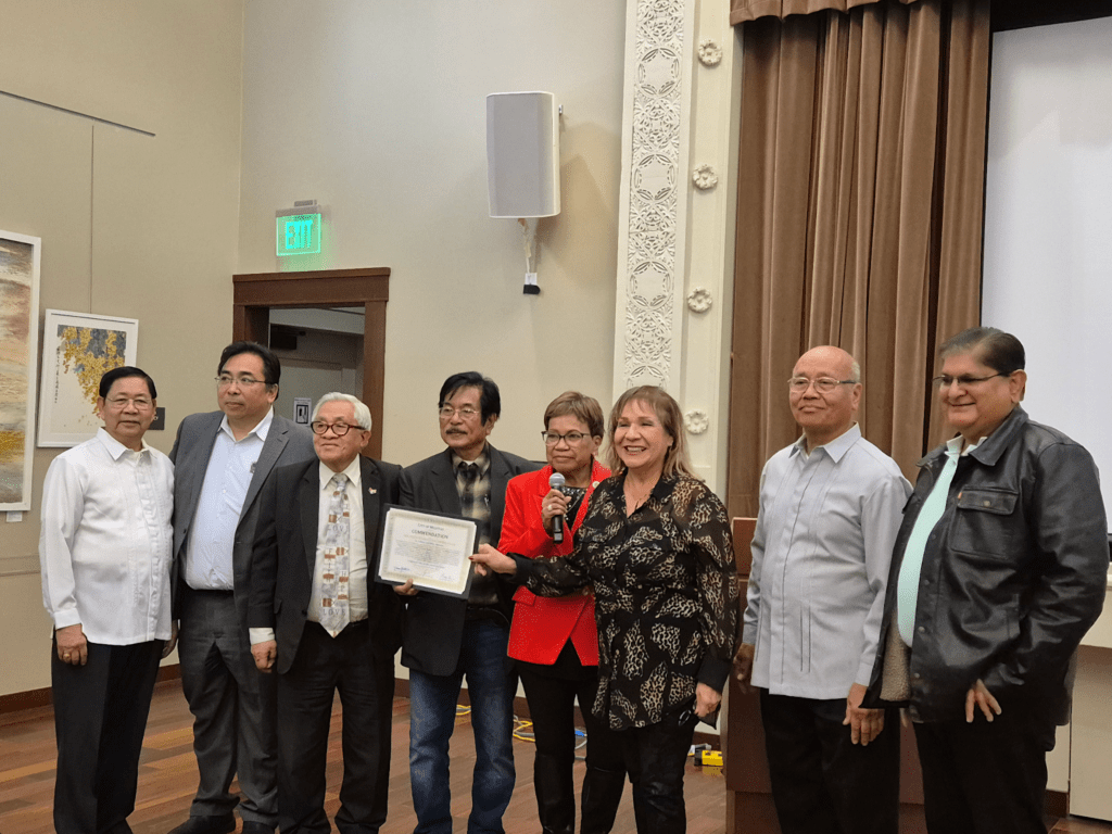 Mr. Alfred Gabot (4th from left), Editor-in-Chief of the Philippine News Today, receives a commendation from Milpitas City Mayor Carmen Montano (6th from left) (San Francisco PCG photo)