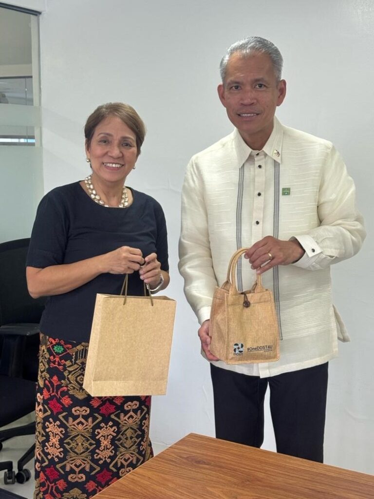 Consul General Neil Frank R. Ferrer and DOST Undersecretary for Research and Development Dr. Leah J. Buendia exchange tokens of appreciation during their meeting at the DOST Main Building in Bicutan, Taguig City on 7 July 2025 (San Francisco PCG photo)