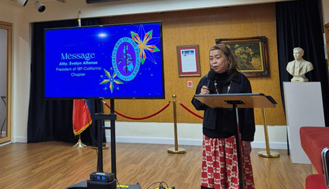 Atty. Evelyn Alfonso, President of IBP–California Chapter, shares a message of partnership and commitment to community legal assistance during the ATN Partners and Volunteers’ Appreciation Night. (San Francisco PCG photo)