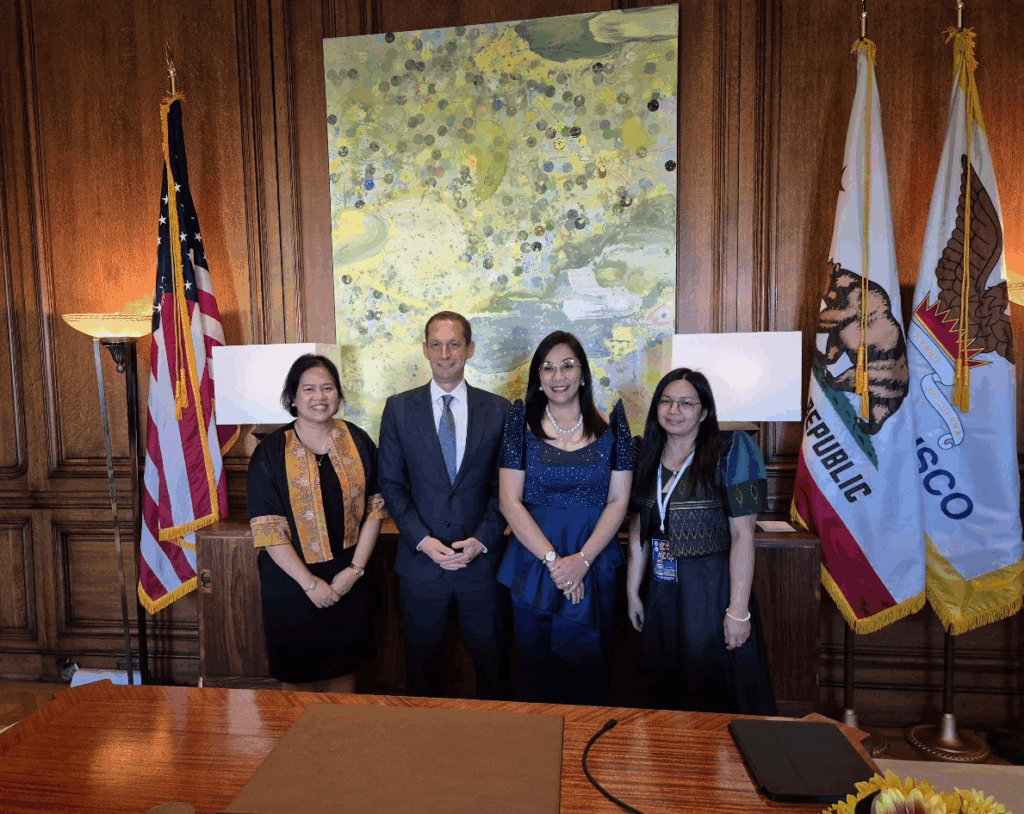 Mayor Daniel Lurie (2nd from the left), flanked by Consul Rowena Pangilinan-Daquipil (leftmost), Deputy Consul General Maria Paz Cortes (2nd from the right) and Vice Consul Glaiza Quarteros at the Office of the Mayor (San Francisco PCG photo)