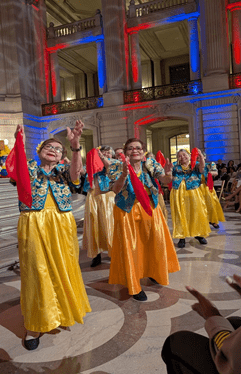 Entertainment for the night includes cultural performances from the SOMA Seniors (left) and LIKHA-Pilipino Folk Ensemble (right)
