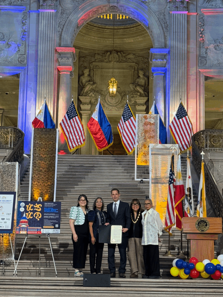 Mayor Lurie presented a proclamation officially declaring the month of October as Filipino American History Month in San Francisco. The proclamation was received by distinguished Filipino American community leaders: Ms. Marily Mondejar, Founder and CEO of the Foundation for Filipina Women’s Network (FWN); Ms. Luisa Antonio, Executive Director of the Bayanihan Equity Center–both organizations marking their 25th anniversary in 2025; and Ms. Alleluia Panis, Director of Kularts, which is celebrating its 40th anniversary this year.