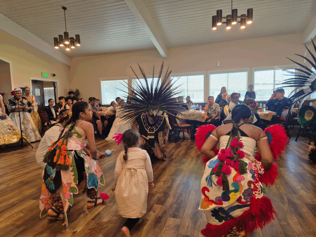 Azteca dance group from San Jose, California performing the “Offering and blessing our dead”, honoring our ancestors through the sacred rhythms of traditional Aztec dance, drum, and prayer (San Francisco PCG photo)